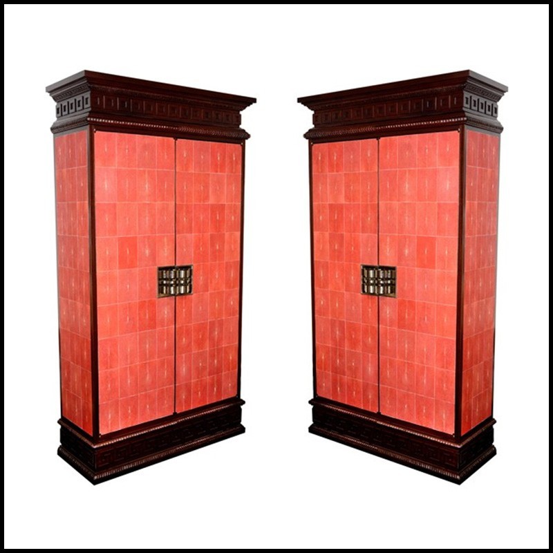 Armoire Royal Galuchat Rouge en acajou massif et couverte avec véritable