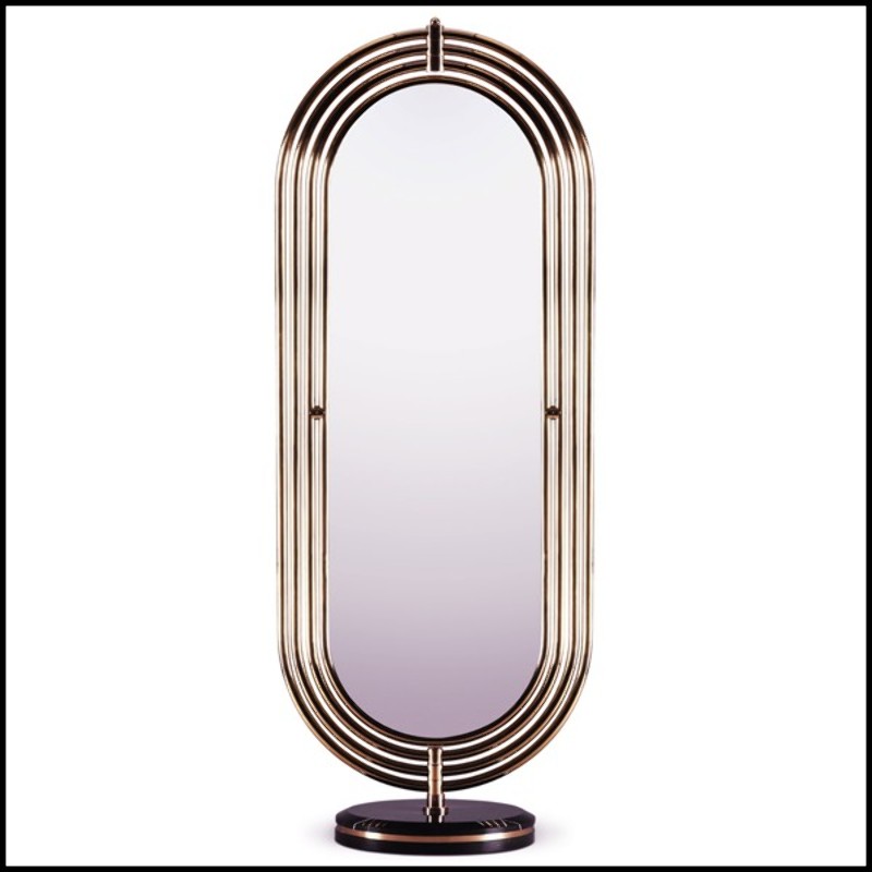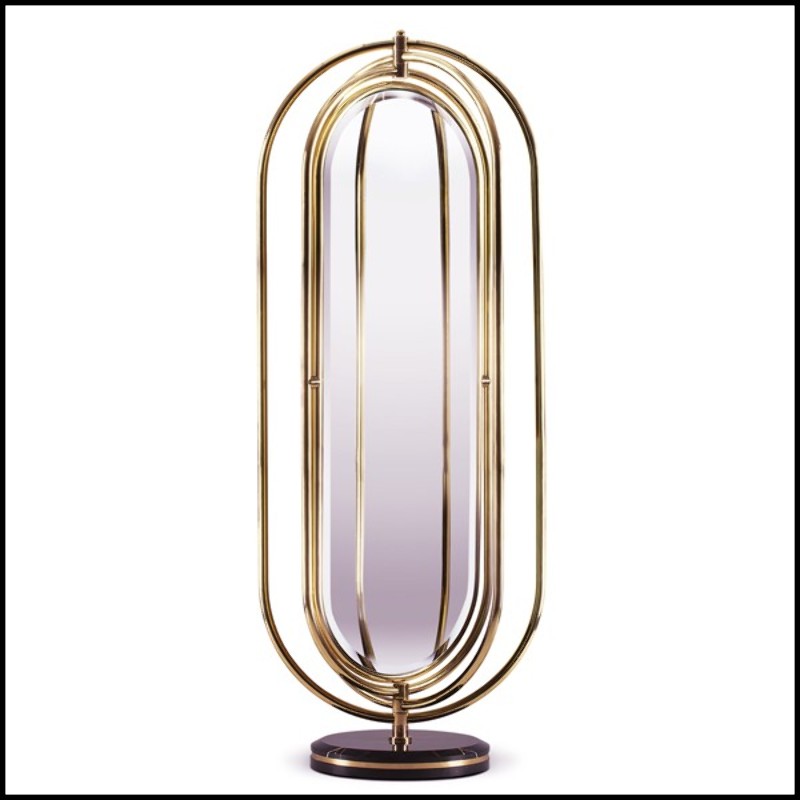 Miroir Brass Tubular sur socle avec cadre tubulaire en laiton poli.