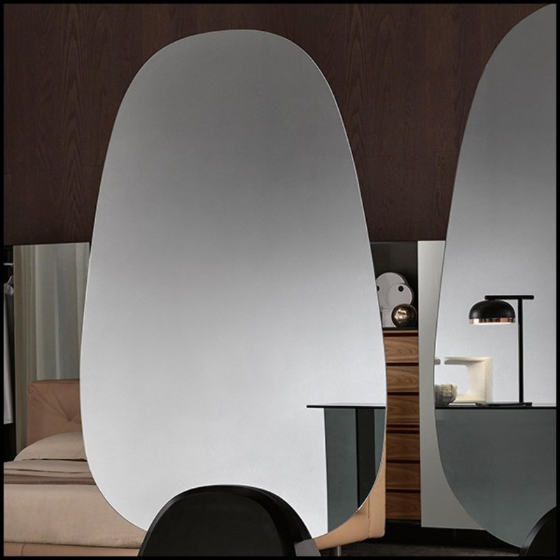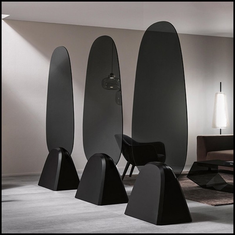 Miroir Pebble avec un miroir panneau en verre fumé sur base noire