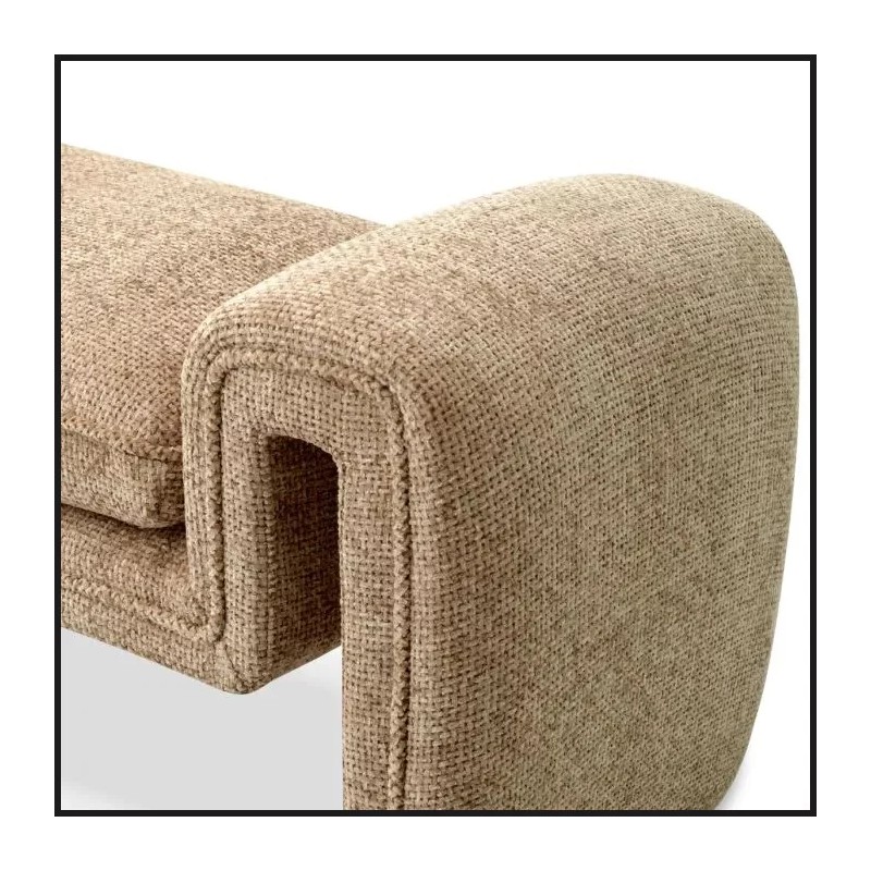 Ce banc design aux courbes harmonieuses, recouvert d'un tissu bouclé crème,