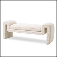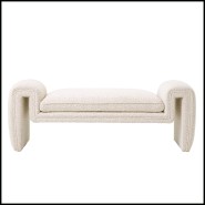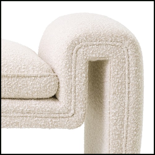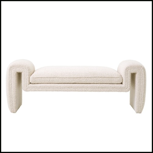 Ce banc design aux courbes harmonieuses, recouvert d'un tissu bouclé crème,