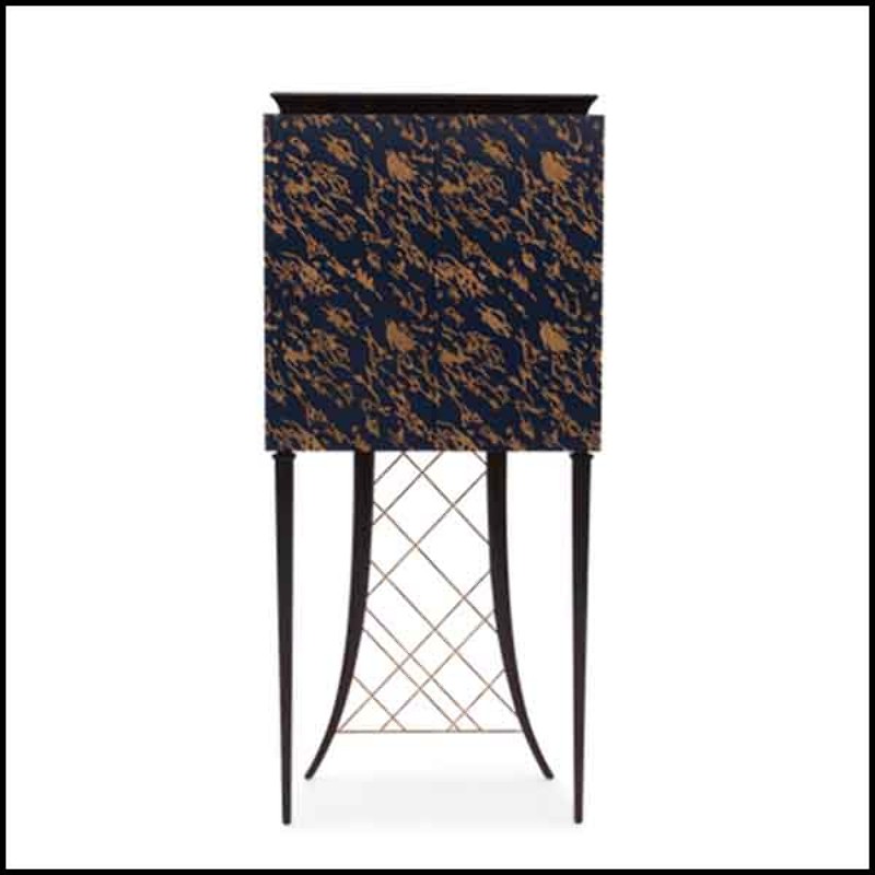 Ce meuble bar à double porte s’ouvre sur un intérieur entièrement miroir,