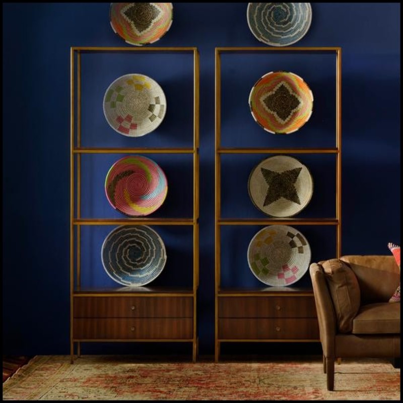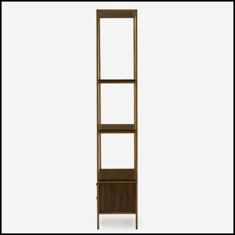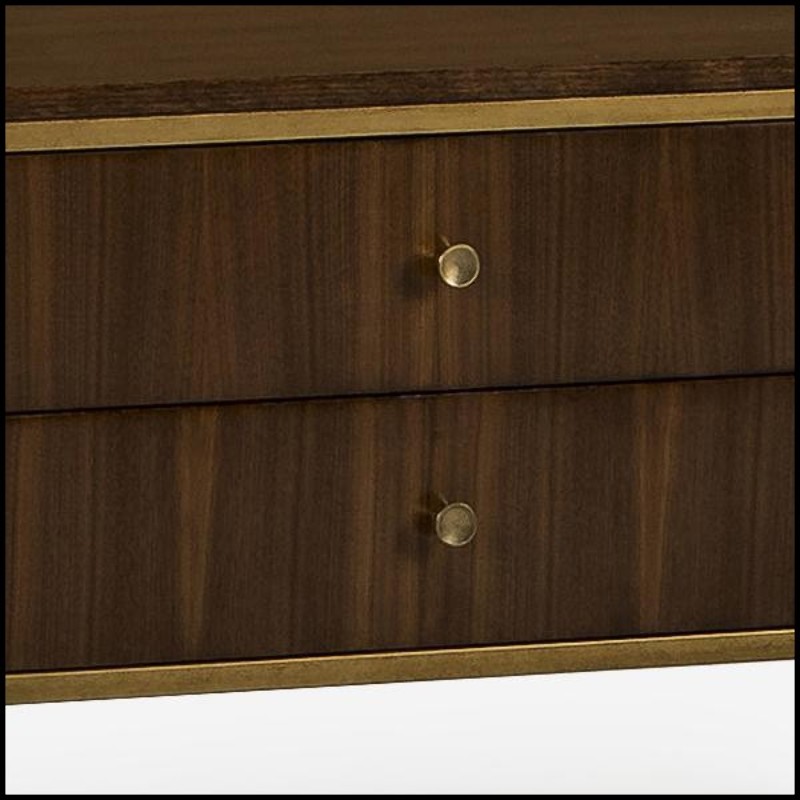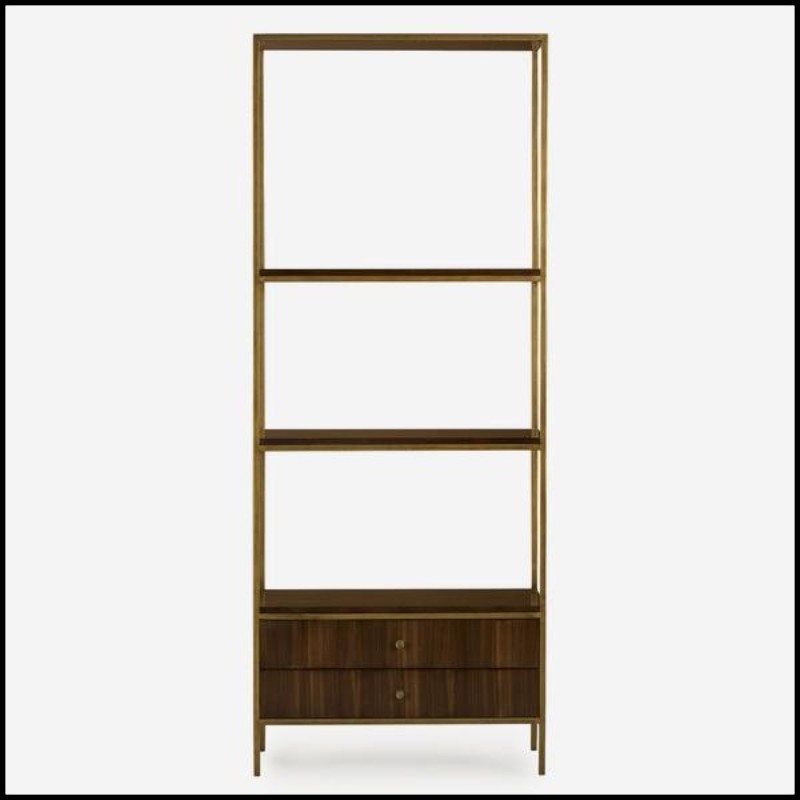 Avec étagères plaquées noyer, deux tiroirs poignée en laiton.