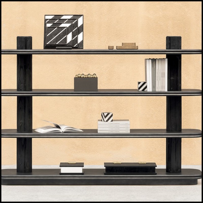 Bibliothèque avec deux structures en bois massif laqué foncé.