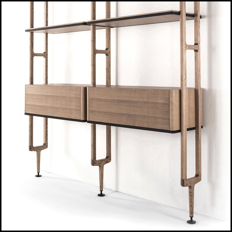 Avec 4 étagères en frêne massif avec cadre en métal finition noir mat