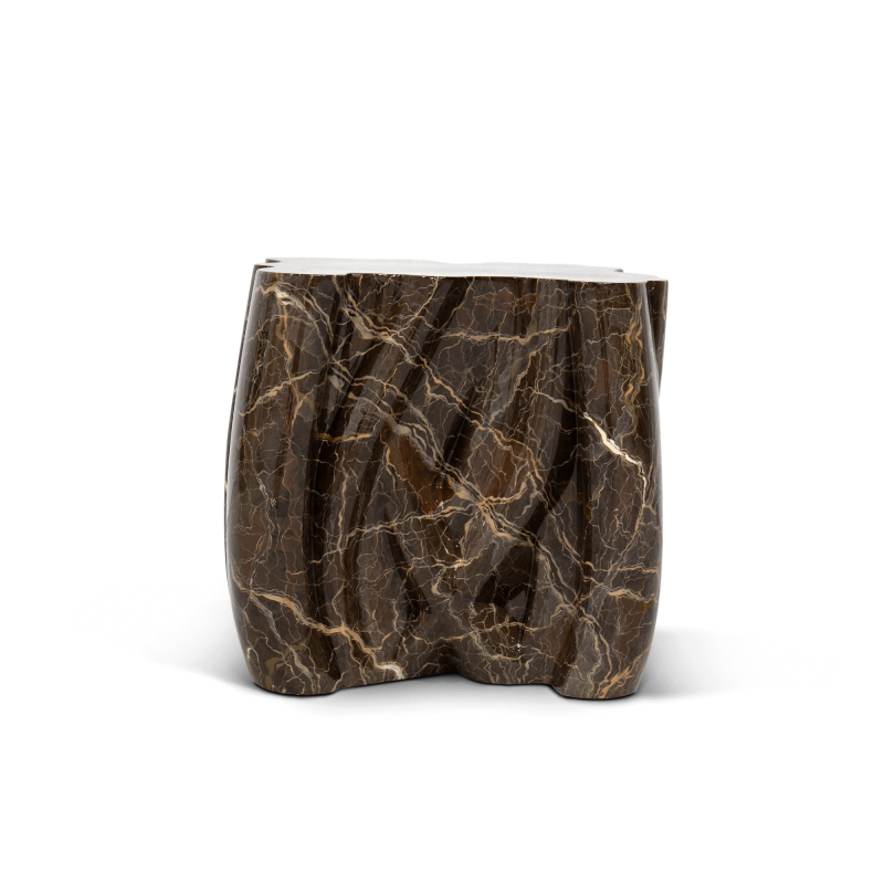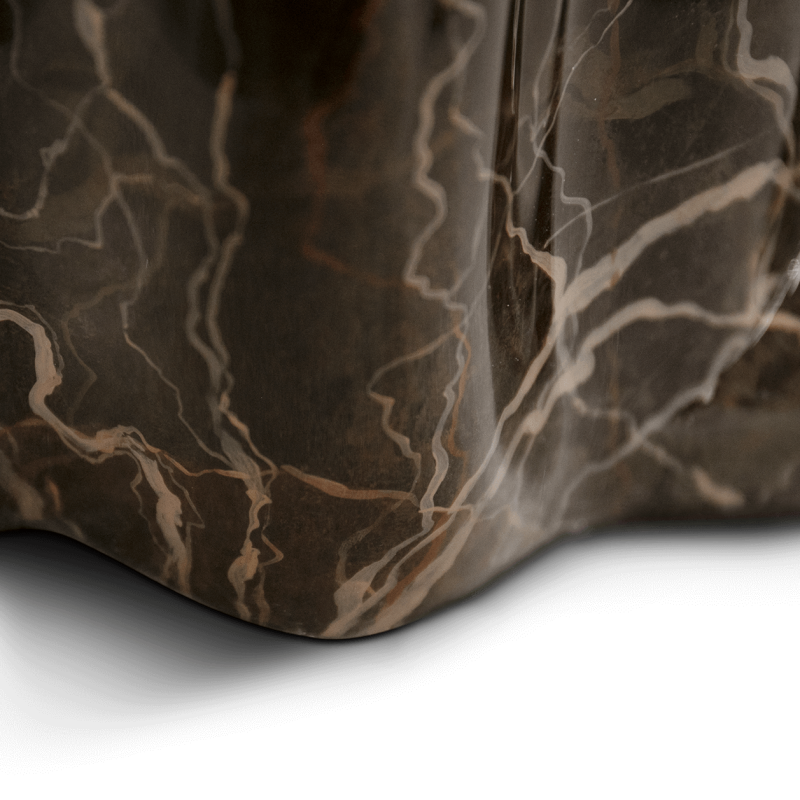 La Table d'appoint Monochrome est une création signée Boca Do Lobo, parfaite pour ajouter une touche d'élégance à votre salon ou hall d'entrée, grâce à son design unique en faux marbre et son matériau de fiberglass.