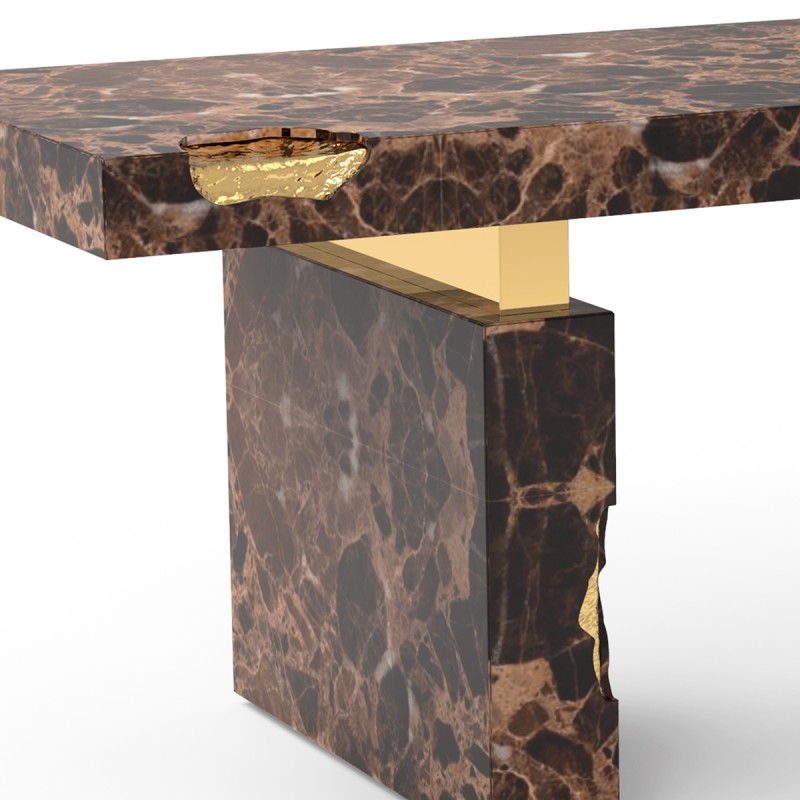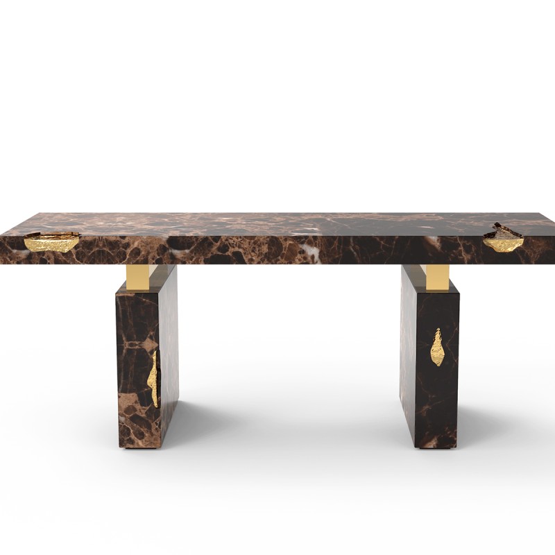 Le Bureau Empire est une création signée Boca Do Lobo destinée à embellir votre espace de travail. Conçu en marbre Estremoz et laiton doré poli, ce bureau allie élégance et distinction, parfait pour un home office ou un bureau d'entreprise.