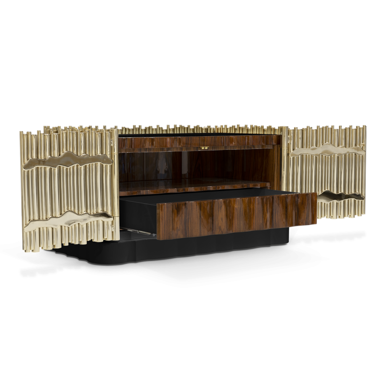 La Table de nuit Symphony est une création signée Boca Do Lobo conçue pour apporter une touche d'élégance dans une chambre à coucher, avec son placage palissandre et son laiton plaqué or, offrant un mélange subtil de modernité et de classicisme.