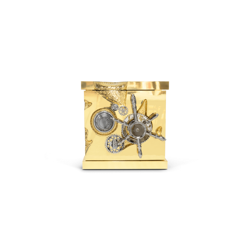 Le Coffre à bijoux Millionaire est une création signée Boca Do Lobo, parfaite pour ajouter une touche d'élégance et de sophistication dans votre chambre ou dressing. Ce coffre à bijoux en laiton poli et bois, aux dimensions précises de L 35 CM | P 35 CM | H 35 CM, offre un espace idéal pour ranger vos bijoux précieux.