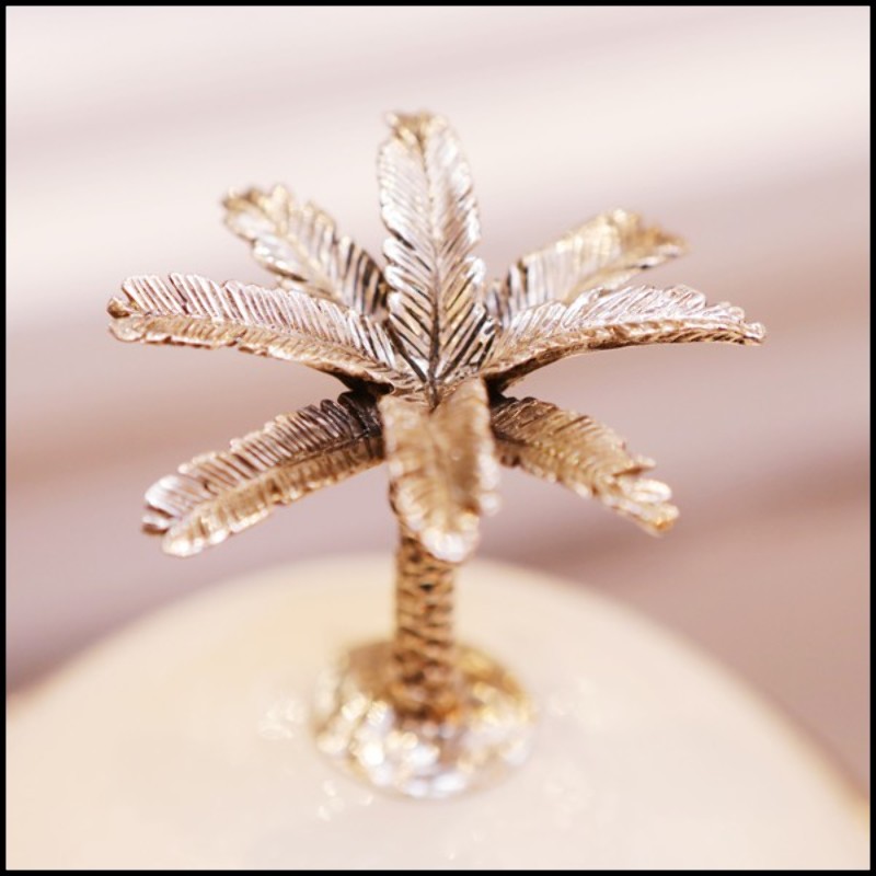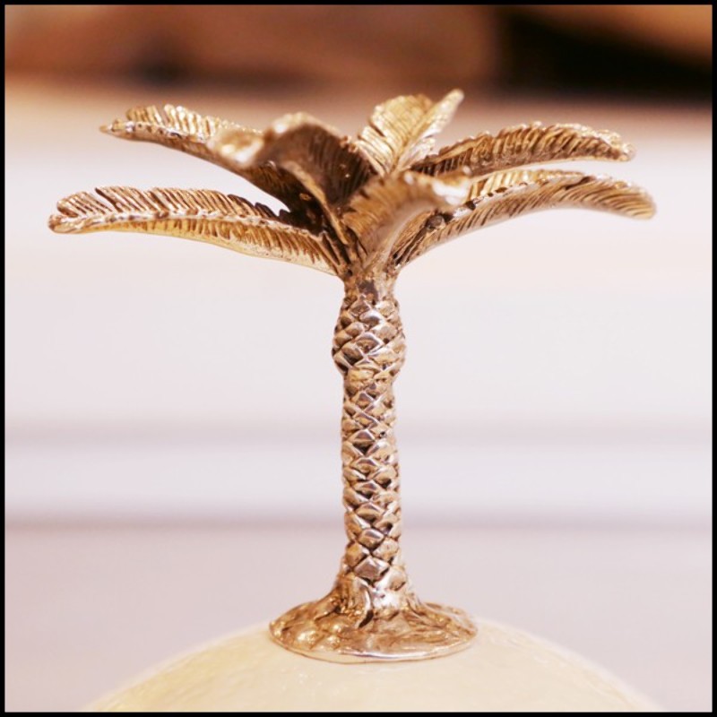 Coffret œuf d'autruche avec palmier en métal argenté.