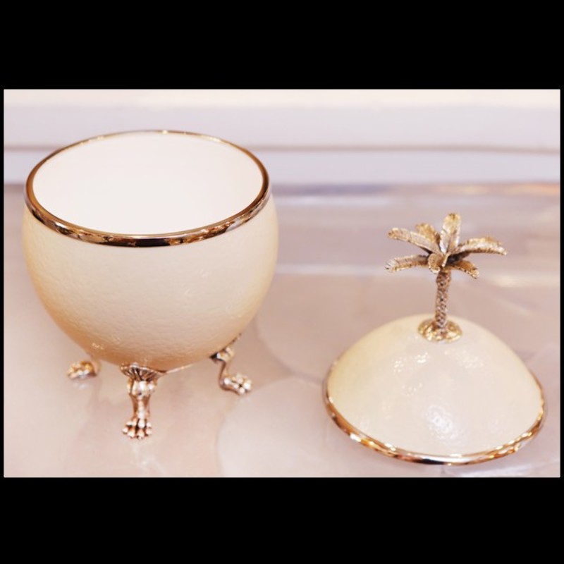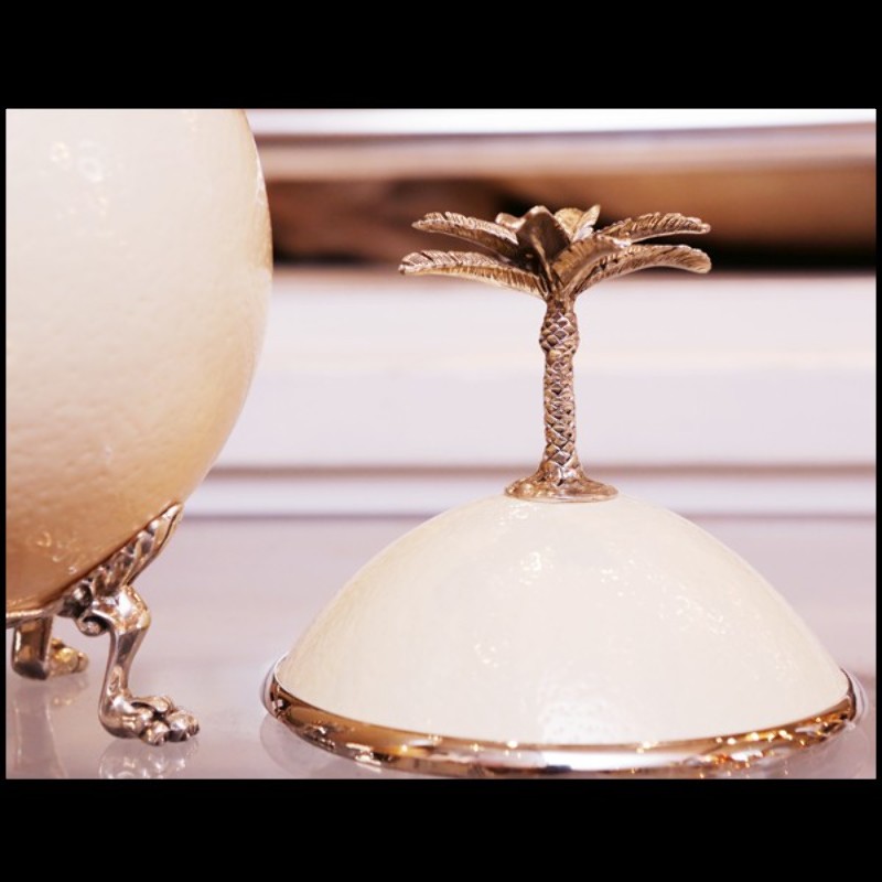Coffret œuf d'autruche avec palmier couvercle et pieds en métal argenté 162-Ostrich Egg