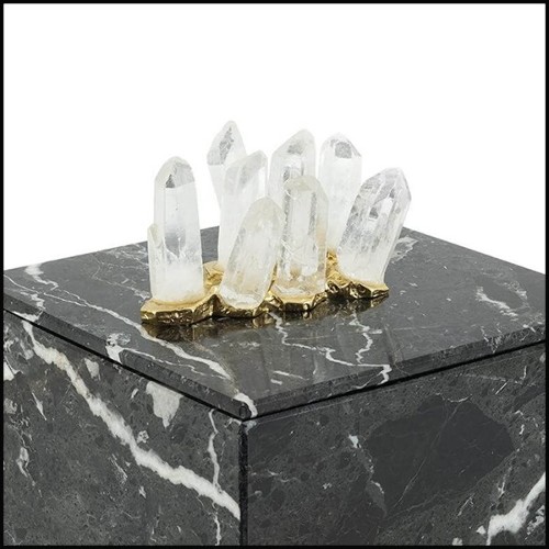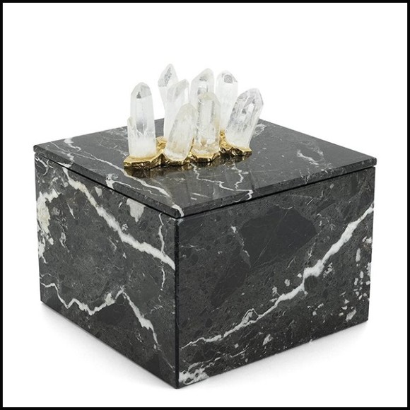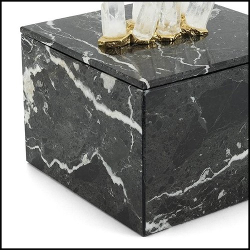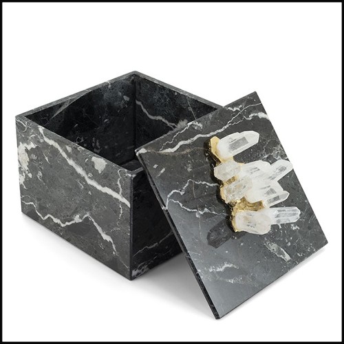 Boîte Quartz and Marble Square fabriqué tout en marbre noir doté d'un couvercle.