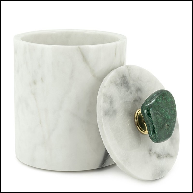 Boite Malachite High tout en marbre blanc,
