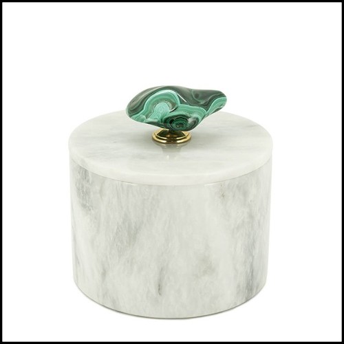 La Boîte Malachite Large par Pacific Compagnie est une véritable œuvre d'art, conçue pour ajouter une touche d'élégance à votre décoration intérieure. Cette boîte de luxe en marbre blanc est surmontée d'un couvercle en boîte malachite véritable, reposant sur un support en boîte base métal à la boîte finition or raffinée. Elle constitue un accessoire de rangement décoratif haut de gamme, idéal pour ranger vos bijoux ou autres objets précieux dans une boîte à bijoux de qualité.