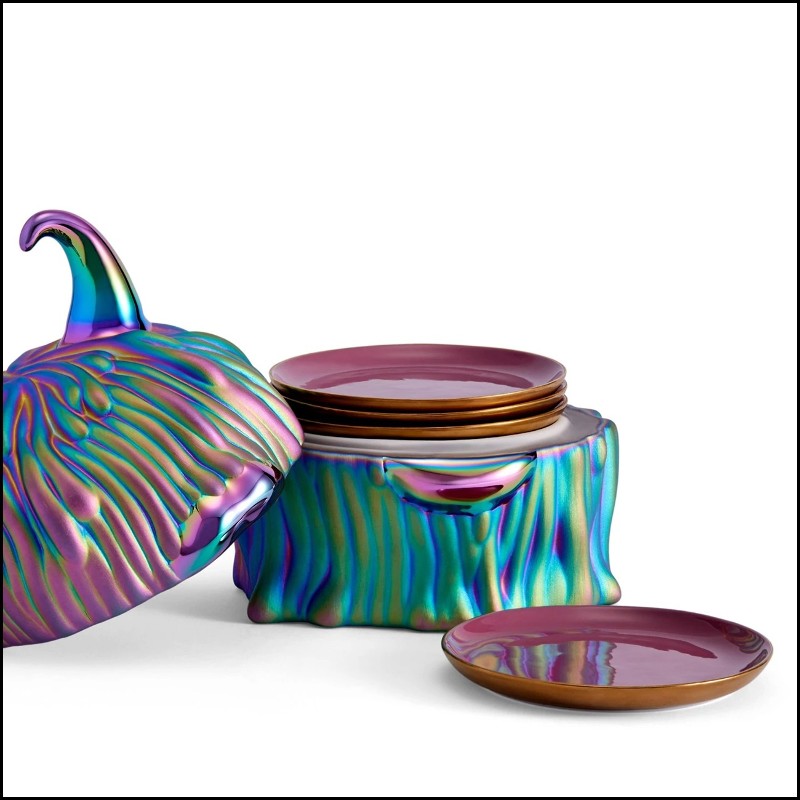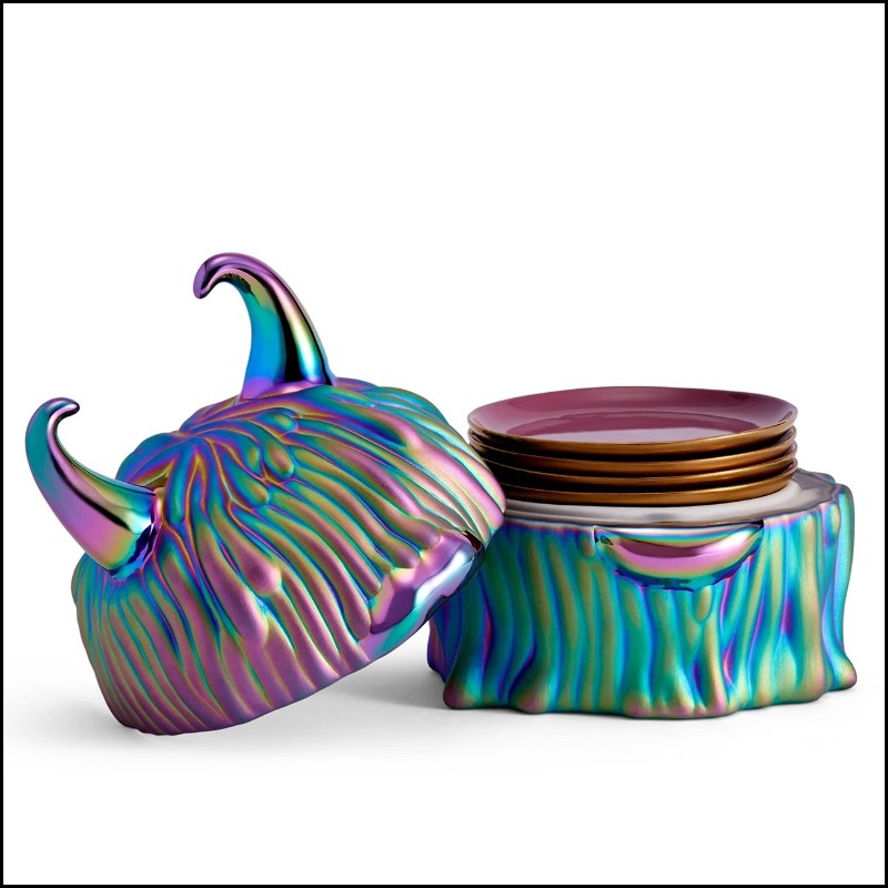 boîte munie d'un couvercle et de 4 petites assiettes.