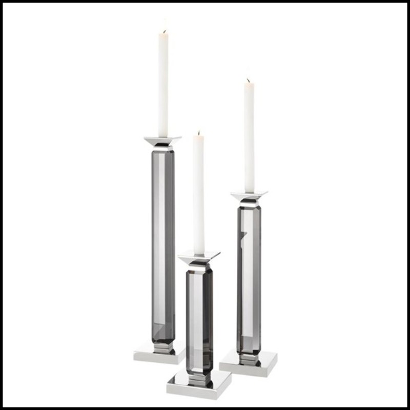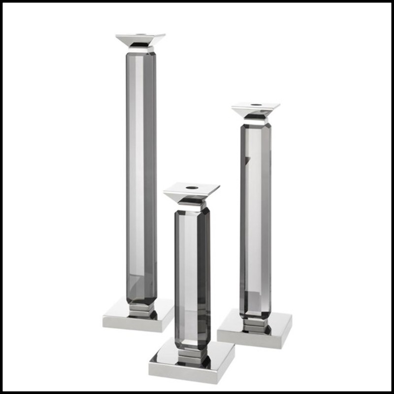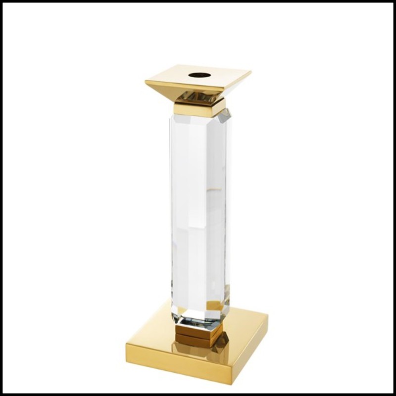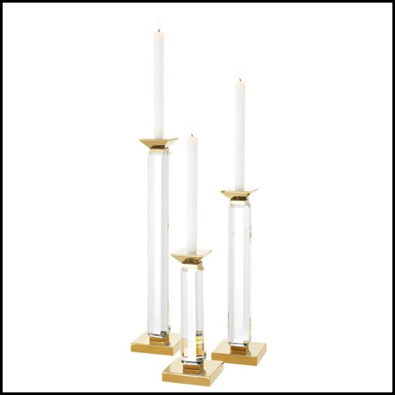 Set de 3 bougeoirs Livia en verre cristal avec finitions en Gold.