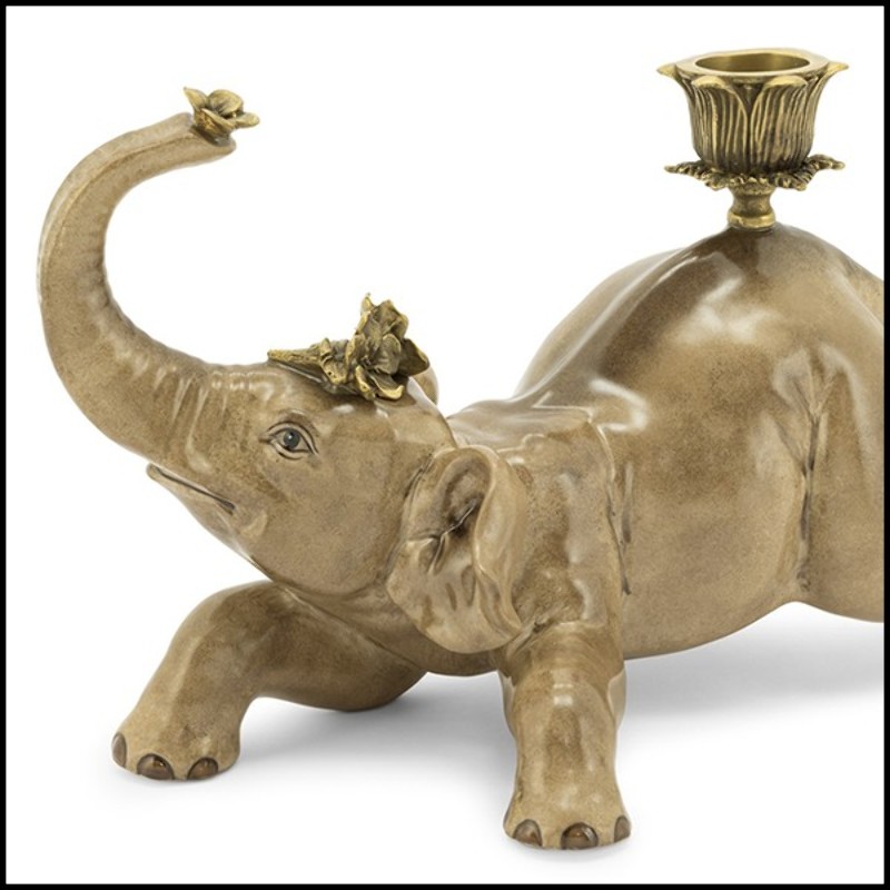 Bougeoirs set de 2 en porcelaine peinte à la main finition bronze 162-Bengali Elephant Set of 2