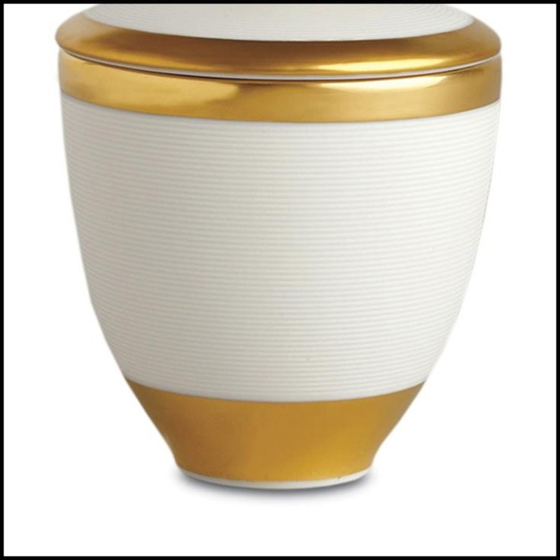 Boîte à bougie en porcelaine finition blanche et plaquée or 24 Karats avec elephant sur le couvercle 172-Elephant White