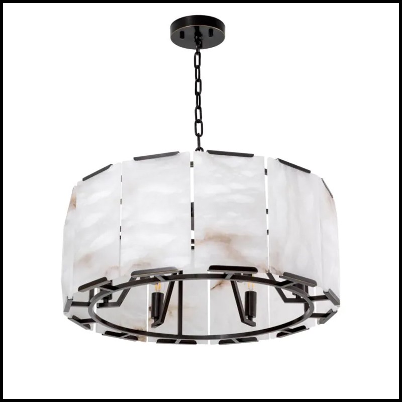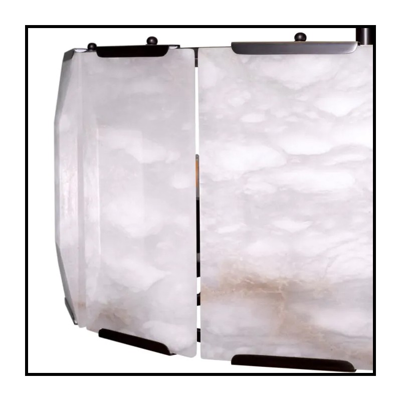 Ornés d’une finition bronze, ses panneaux d’albâtre
