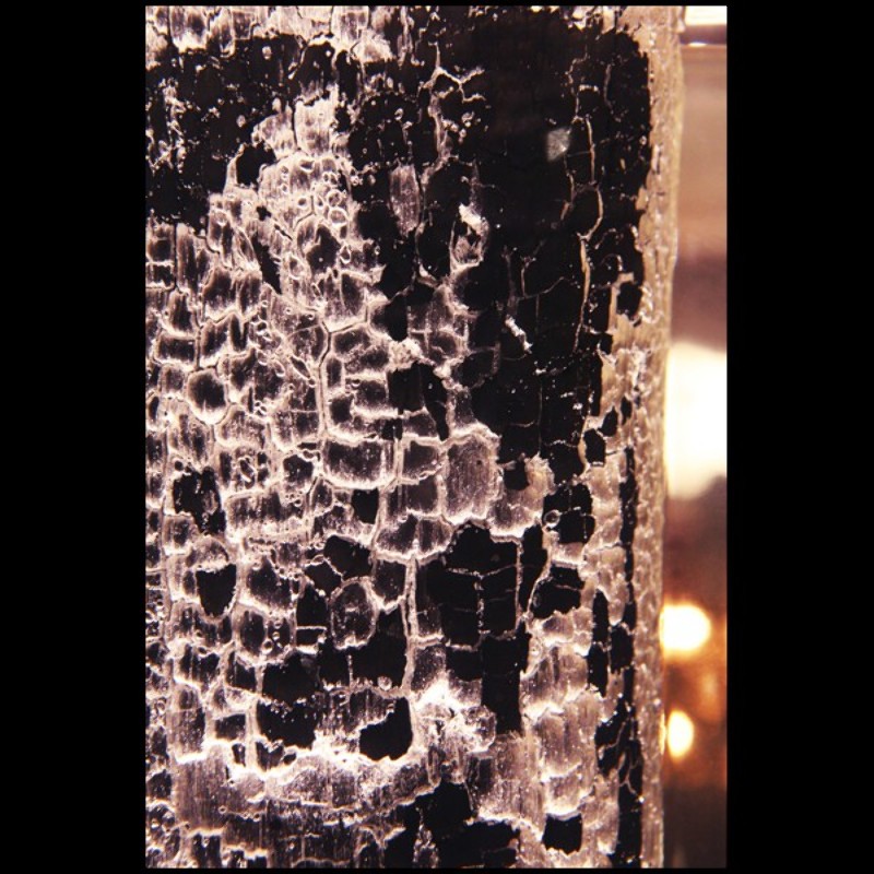 Bout de canapé avec tronc en bois massif brûlé saisi dans du verre acrylique PC-Burnt Trunk