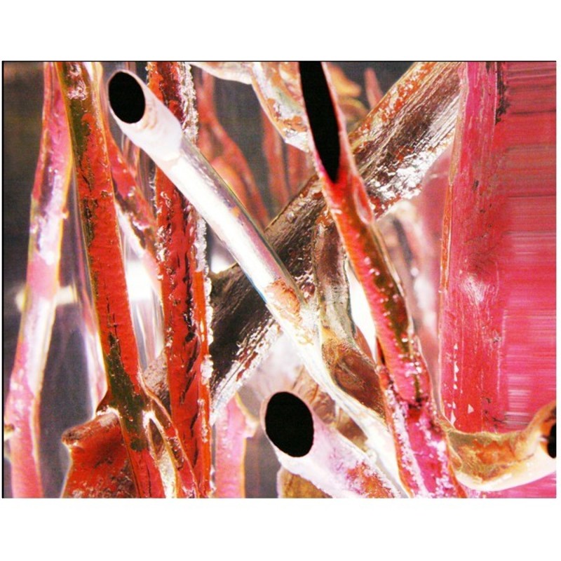 en mélange de rouge, rose et orange fluo, le tout saisi en inclusion