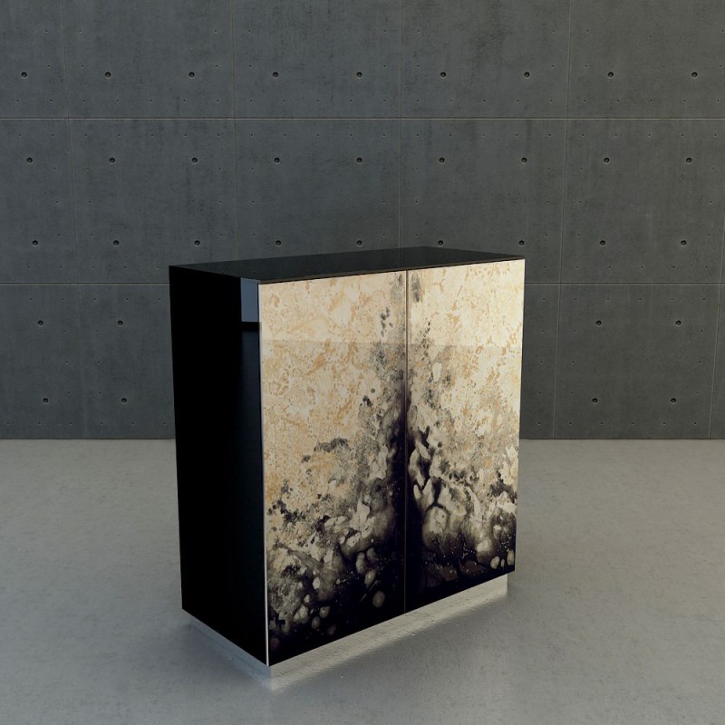 Les Buffets Atlanta sont une création signée Rugiano, conçus pour occuper un espace de réception dans un hall d'entrée ou un salon, avec une finition en laiton bronzé ou chrome qui ajoute une touche d'élégance.