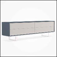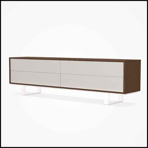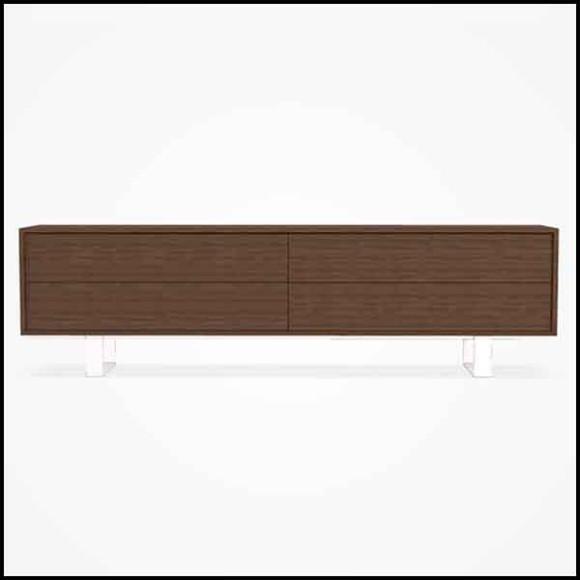Buffet Sweet en structure noyer américain naturel, pieds en métal blanc mat.