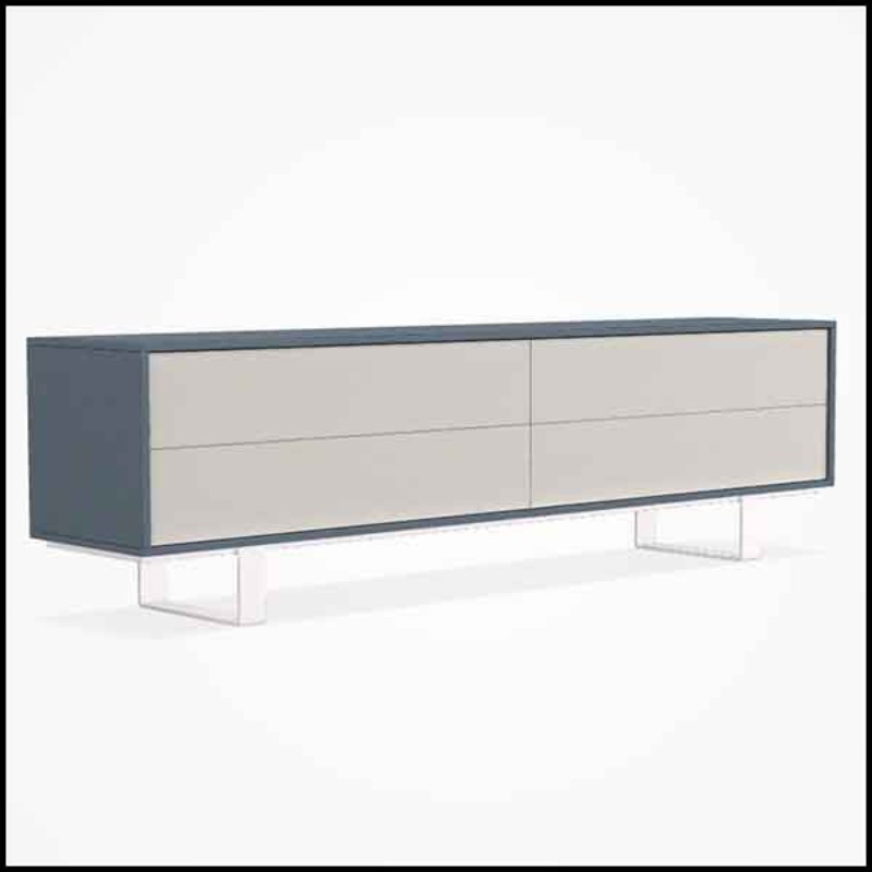 Buffet Sweet en structure noyer américain naturel, pieds en métal blanc mat.