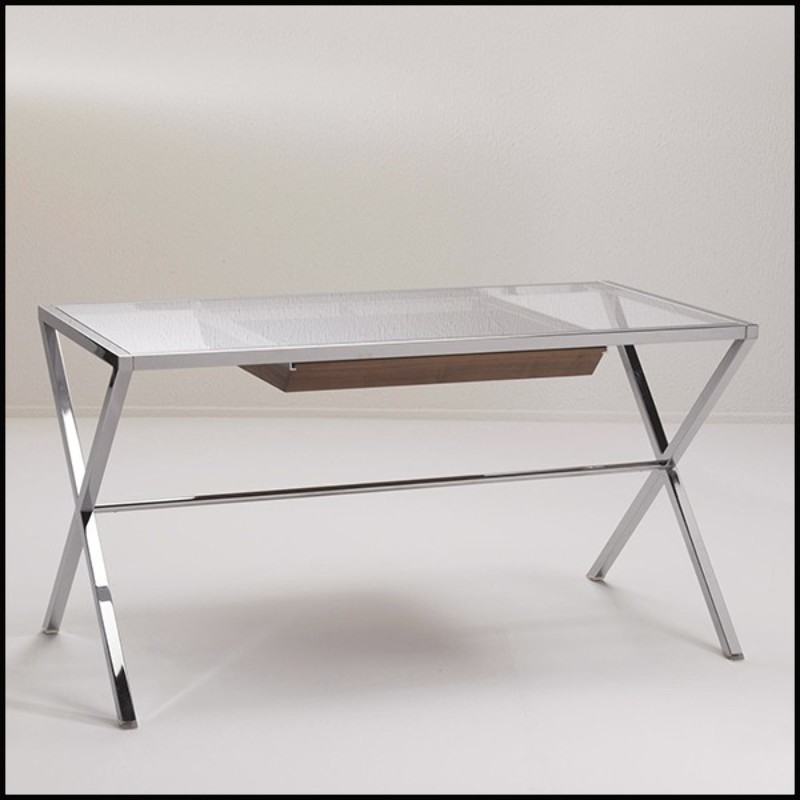 Avec 1 tiroir en bois de noyer massif sous le plateau.
