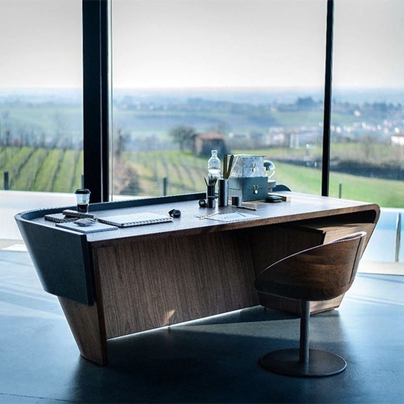 Le Bureau Racing associe le noyer massif à des façades en cuir raffiné
