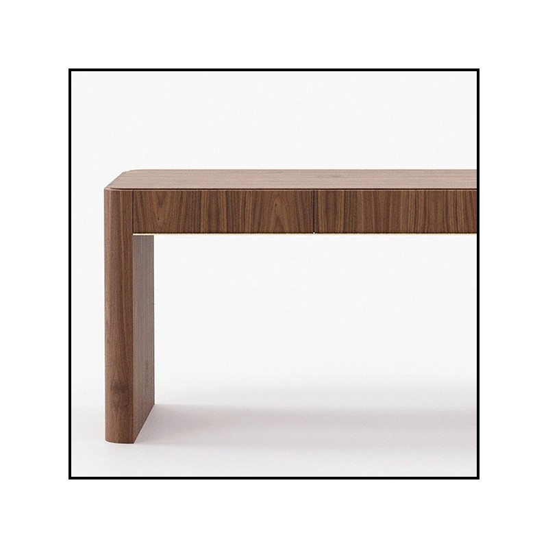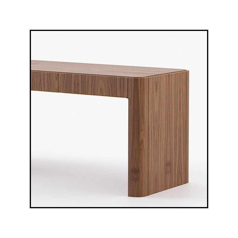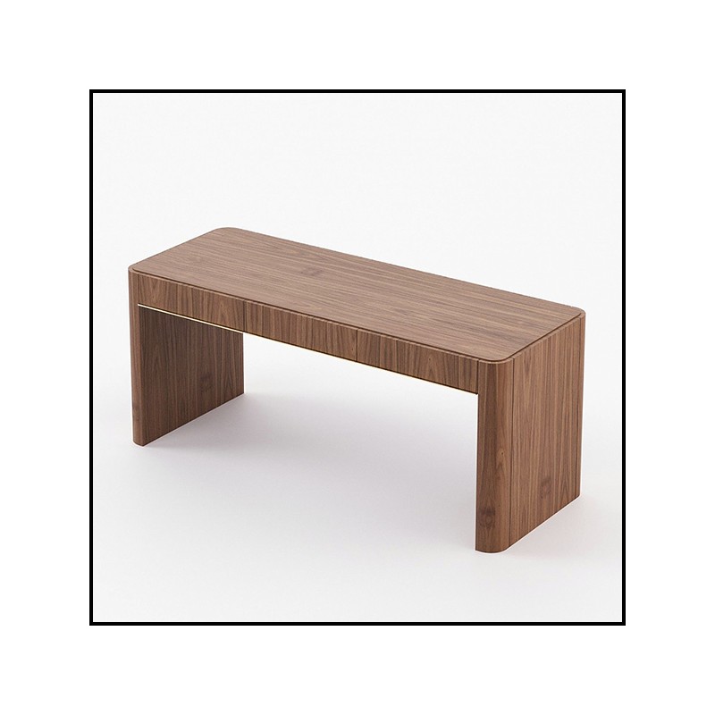 Réalisé en placage de noyer finition mate, il est équipé de trois tiroirs