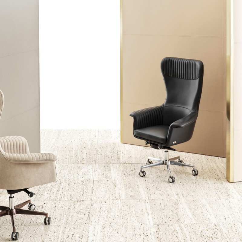 Le Bureau President Chair est une création signée Rugiano destinée à apporter une touche d'élégance dans un bureau ou un espace de travail, avec son design chromé et ses dimensions imposantes de 87 × 72 × H 134/141.