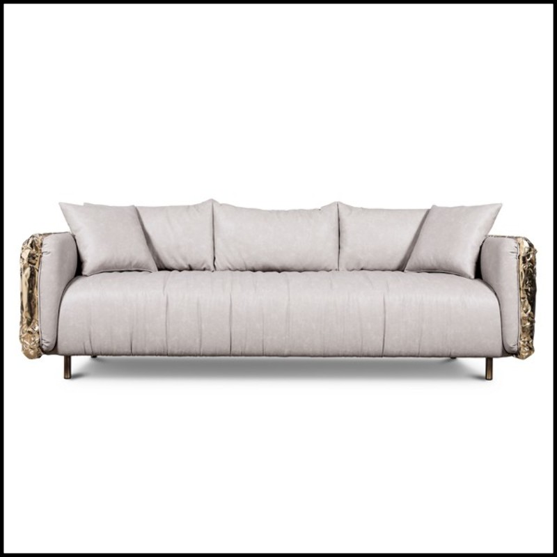 Canapé en véritable cuir gris avec dossier et côtés en laiton poli et martelé 145-Gold Safe
