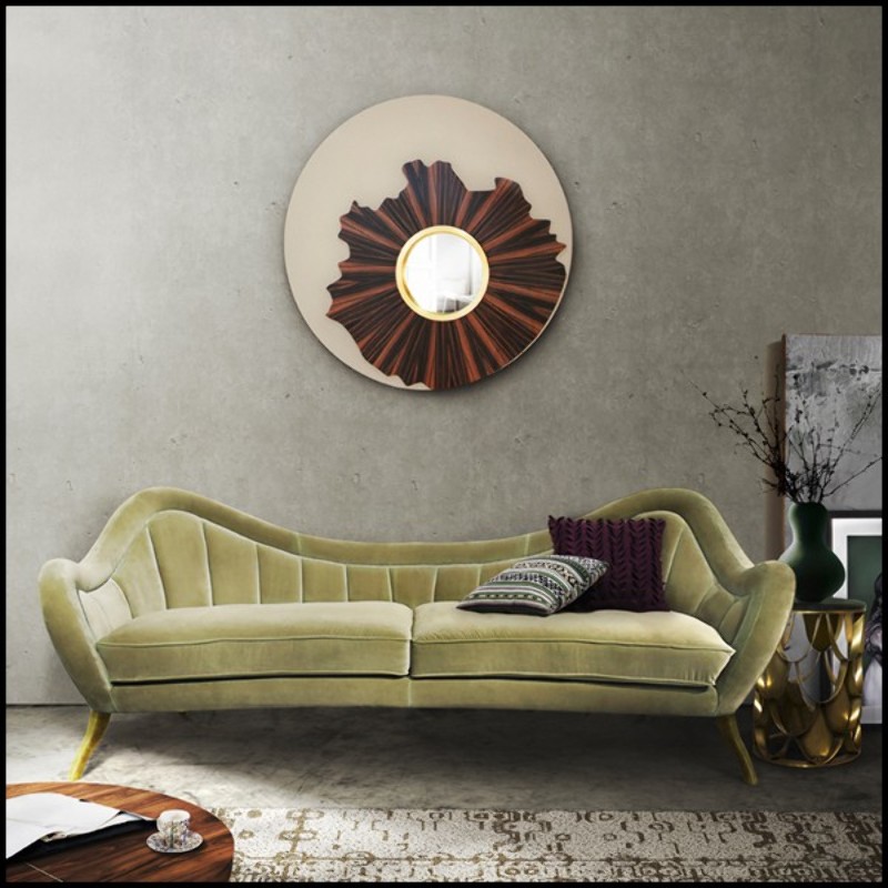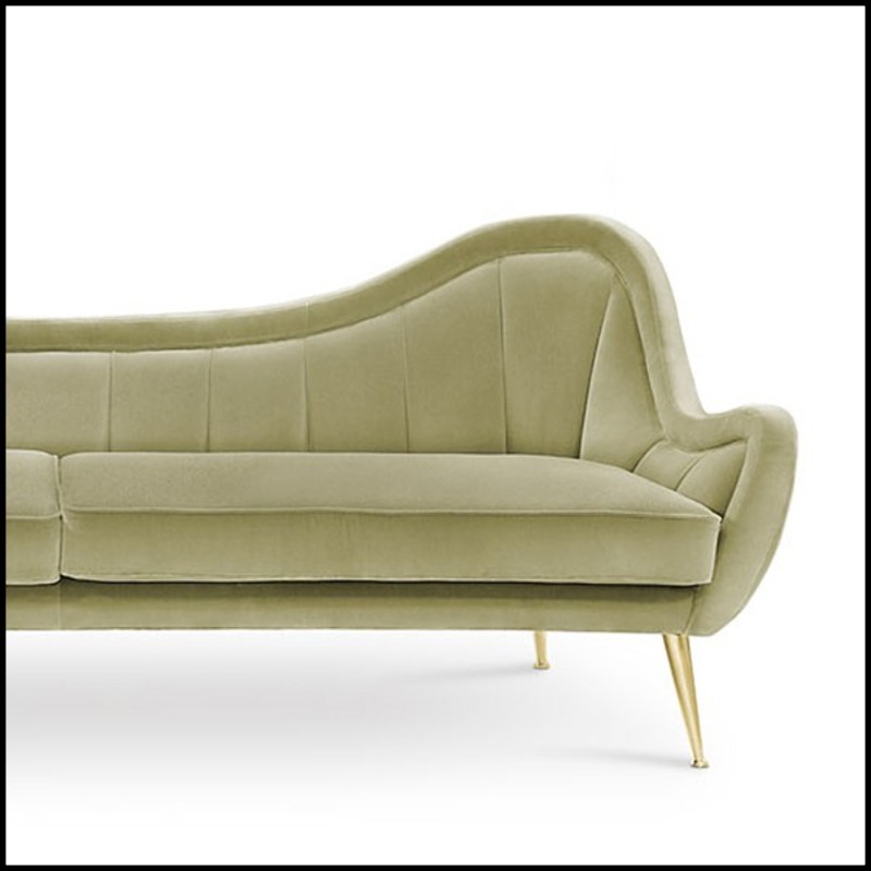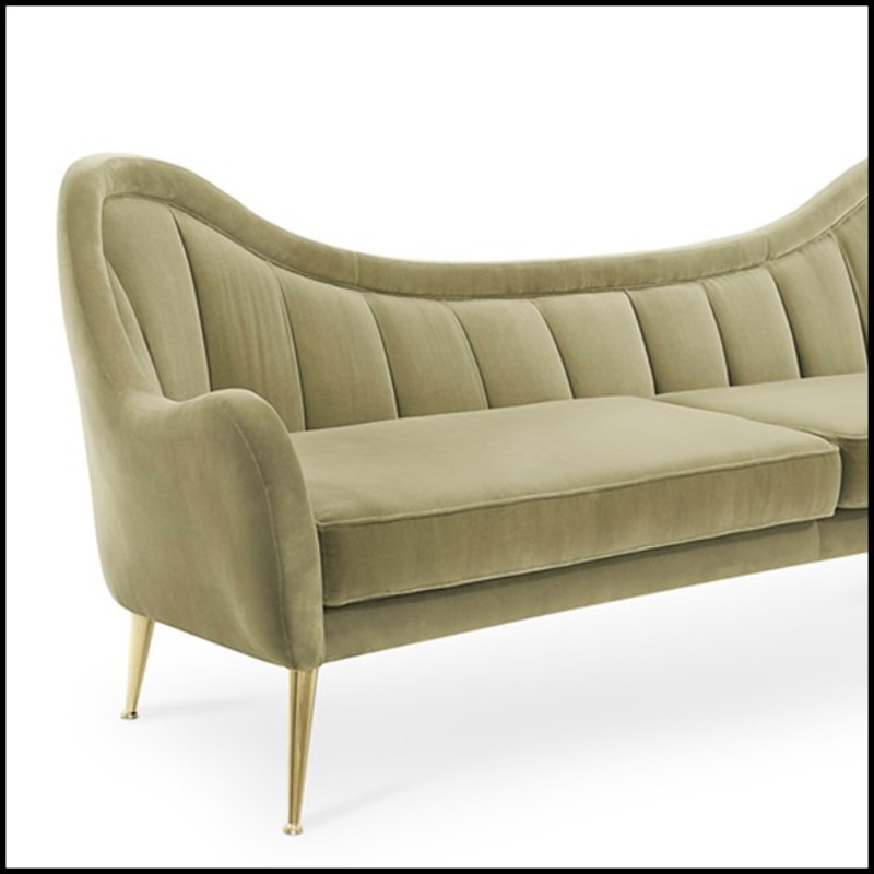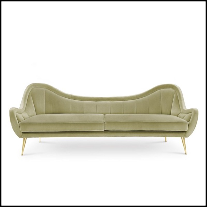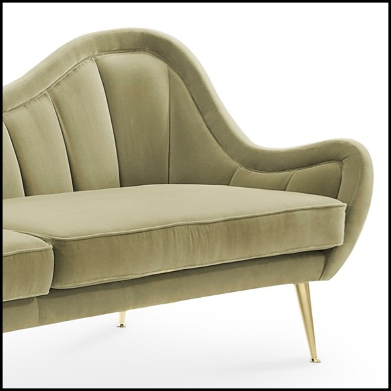 Canapé avec structure en bois recouvert de velours en coton finition vert mandel 155-Eldorado