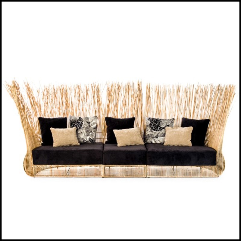 Canapé en acier et rotin naturel composé de 2 fauteuils d'angle et d'un siège lounge central 178-Bundle Triple