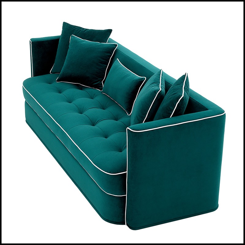 rembourré et revêtement cavett velours bleu foncé avec liseré blanc.