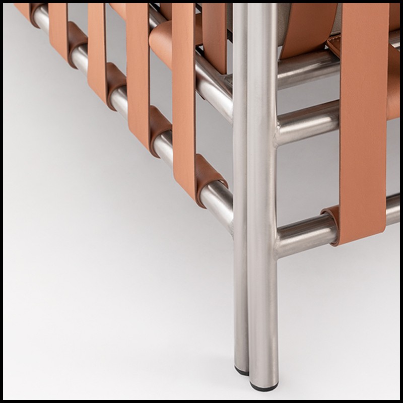 Ce canapé se distingue par sa structure en tube en acier inoxydable AISI 316L