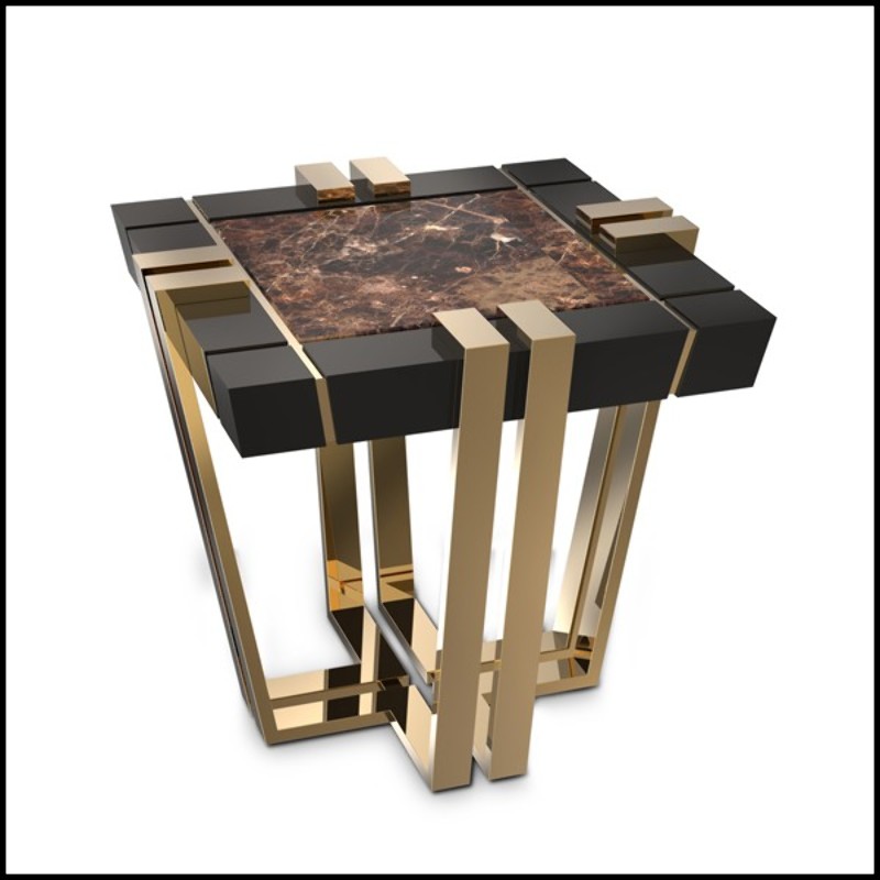 Table d'appoint avec structure en bois laqué noir et plateau en marbre brun 164-Emperador