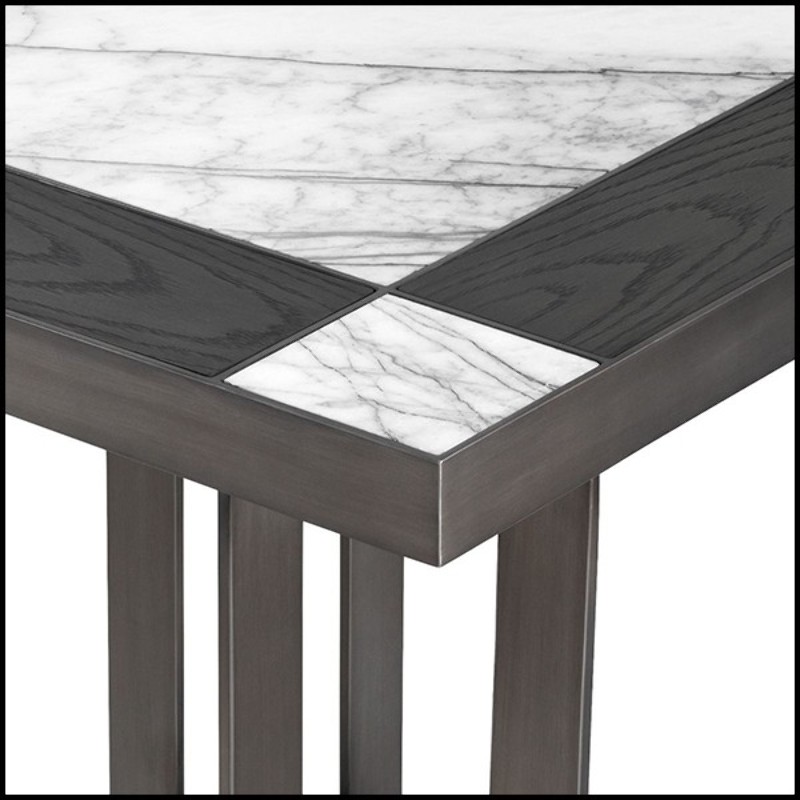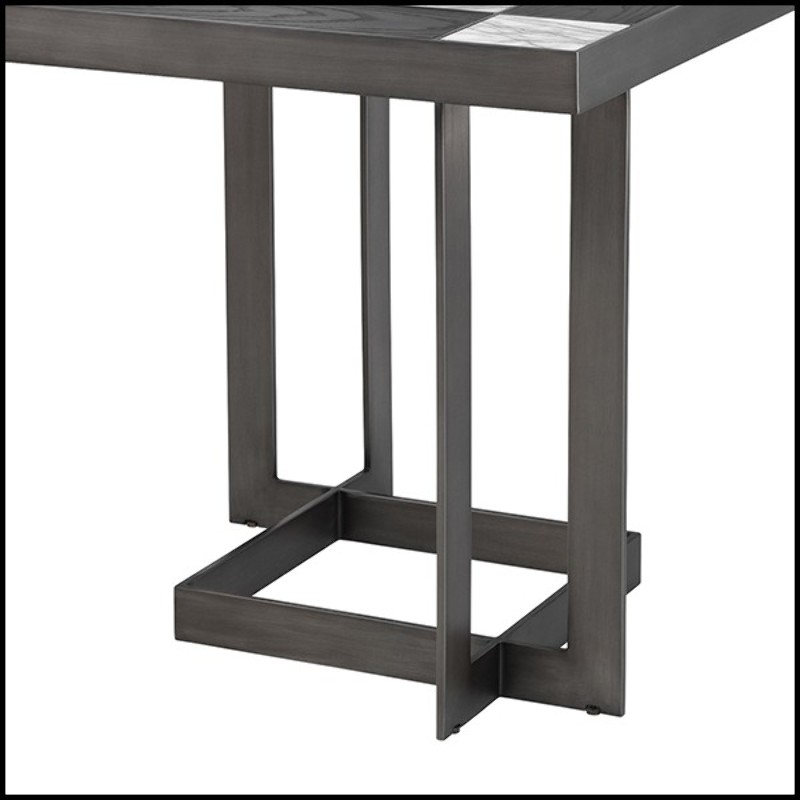 Table d'appoint Black Oak avec structure en acier inoxydable finition gunmetal.