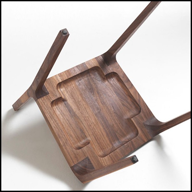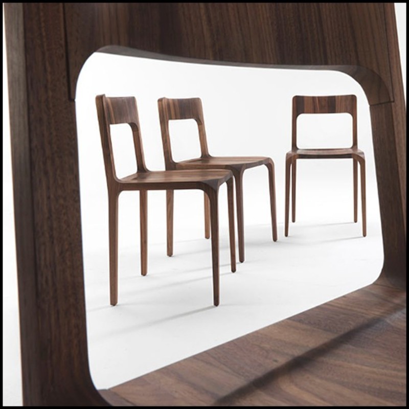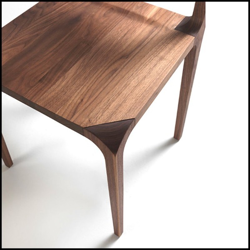 Chaise Refined en bois de noyer massif sculpté à la main.