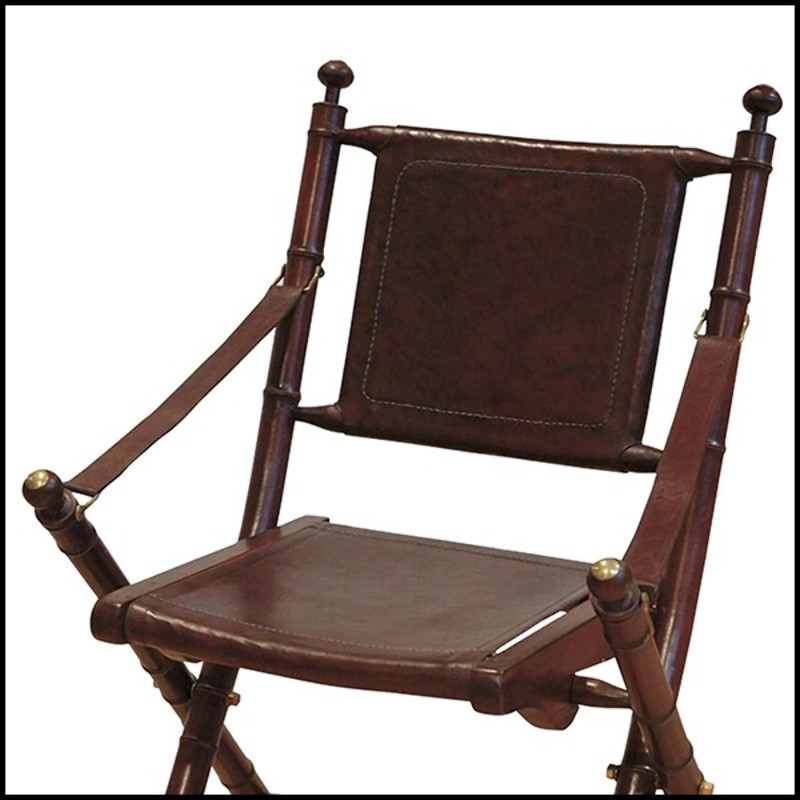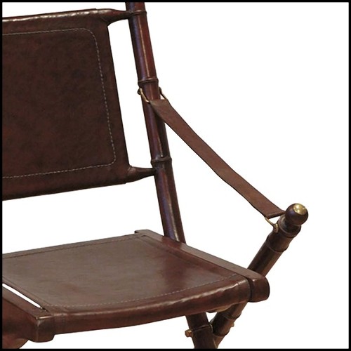 finition marron. Avec assise, dossier et accoudoirs en cuir marron.