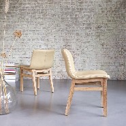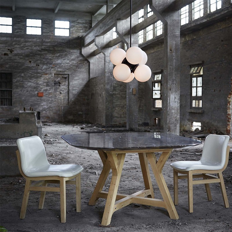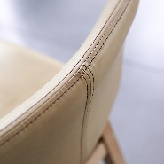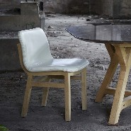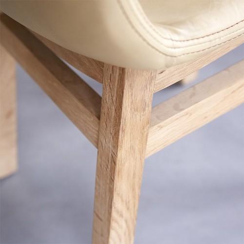 Chaise Cocoon doté d'une structure en chêne et d'une assise en cuir ou tissu.