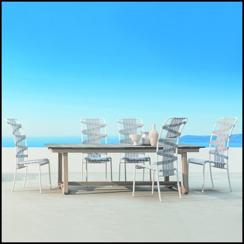 Chaise Weaving High Back avec structure en aluminium finition laqué bleu.