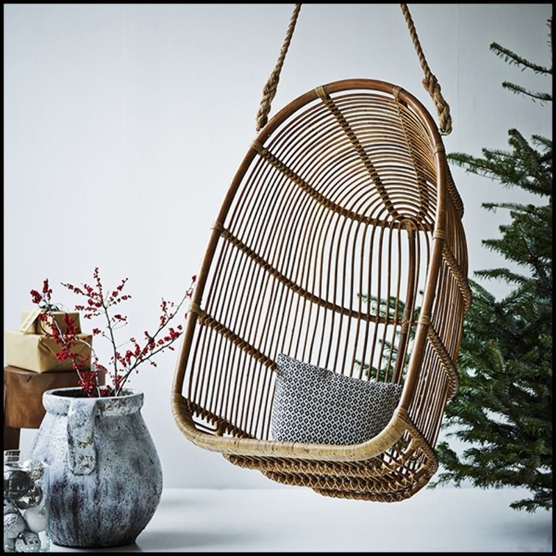 Chaise en Suspension Lagune tout en fibre de résine en finition style rotin.
