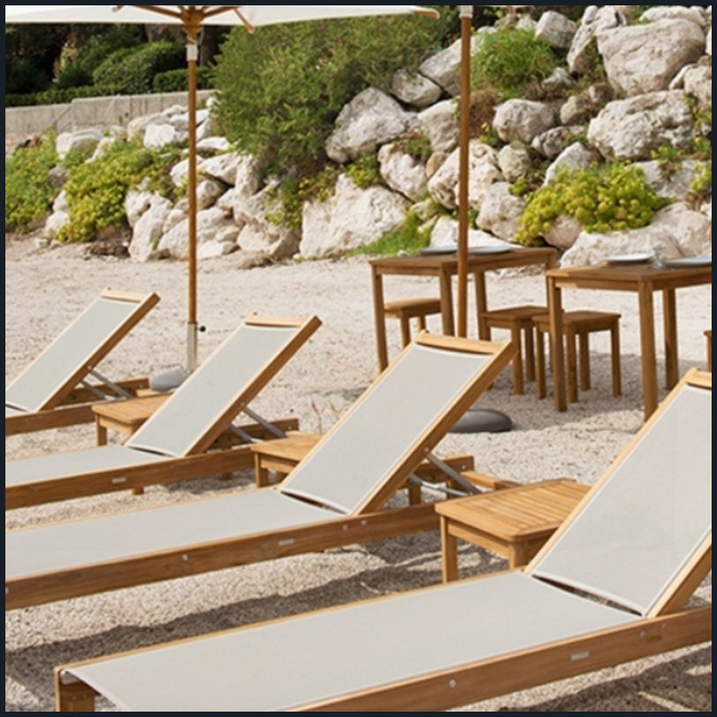 Chaise longue Ibiza dotée d'une structure en teck massif naturel, non huilé.