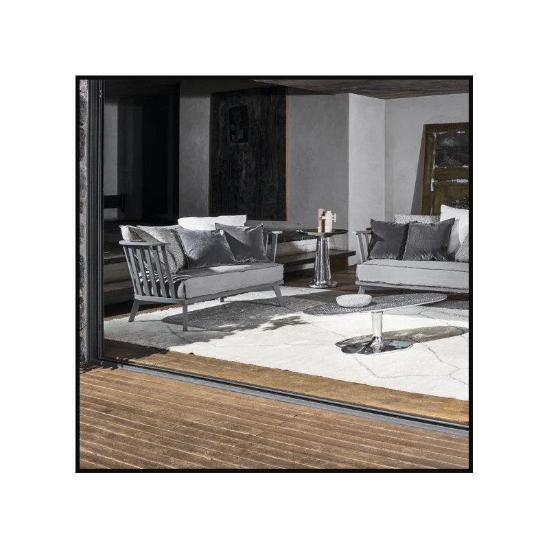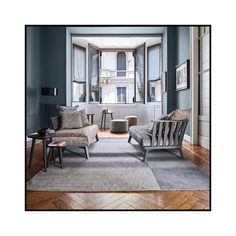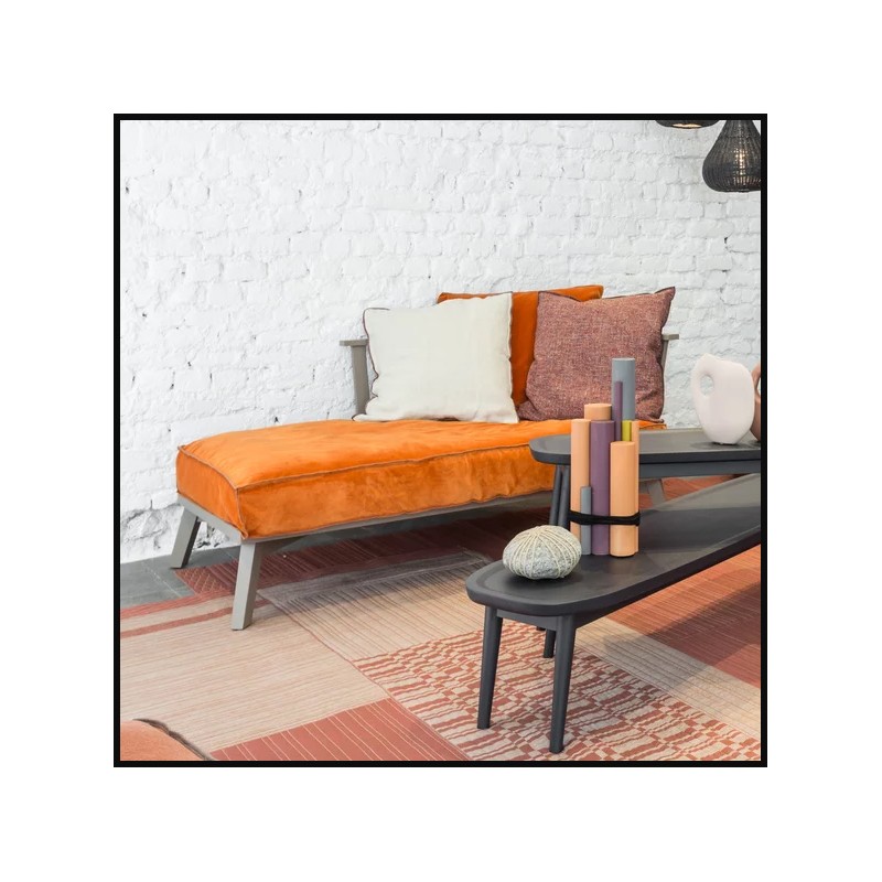 et chêne laqué au gingembre. Coussins de dossier en dacron et duvet.