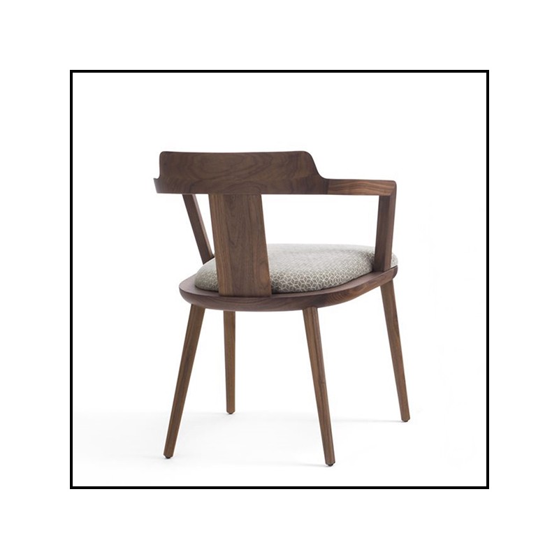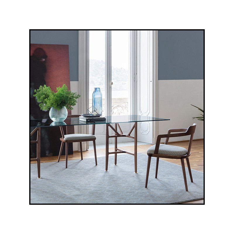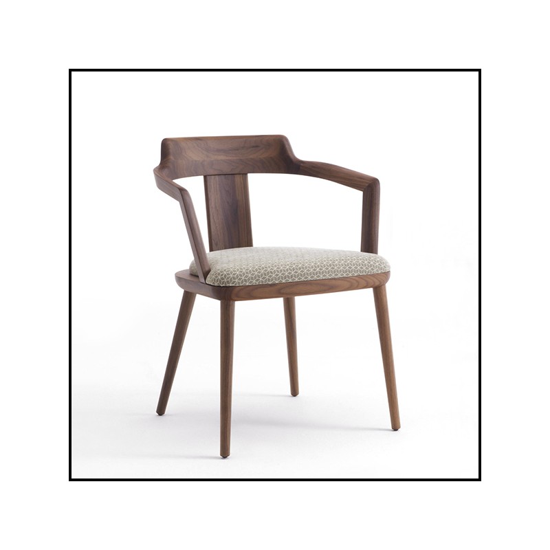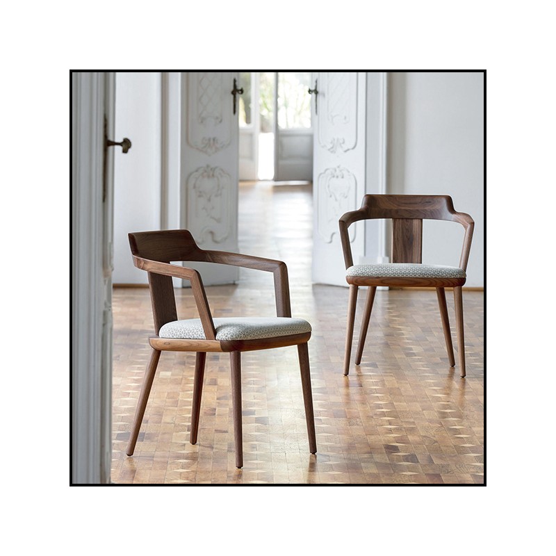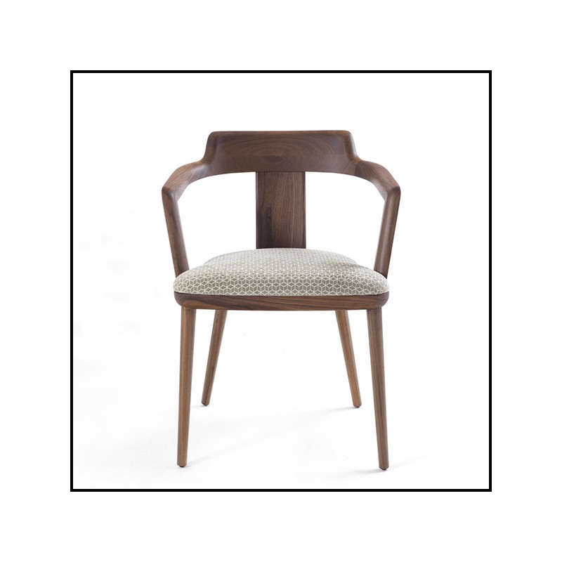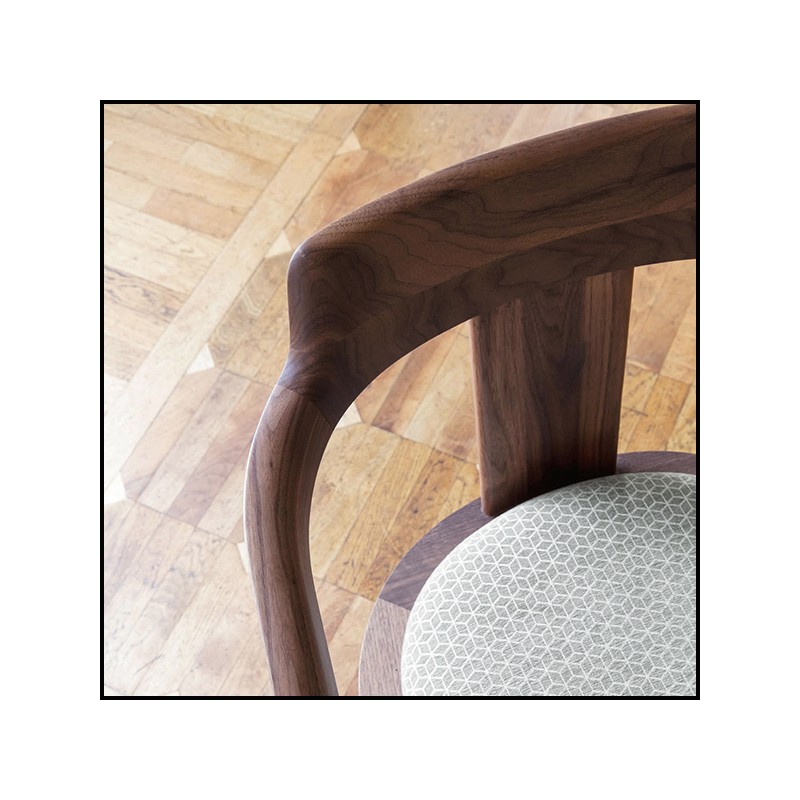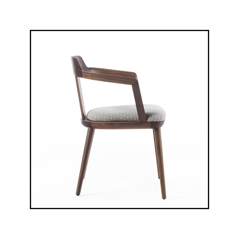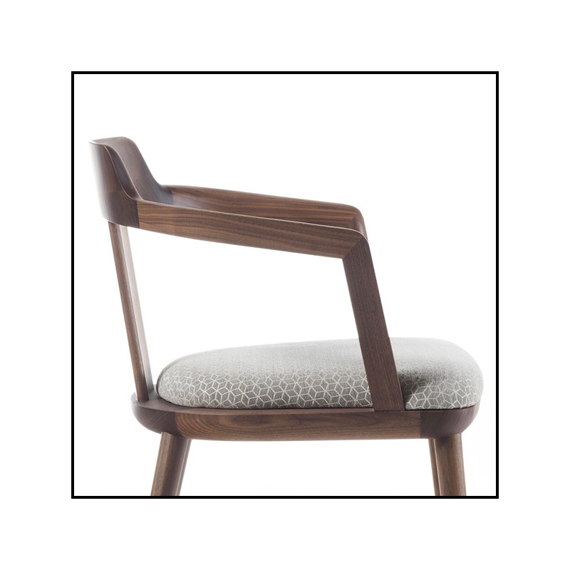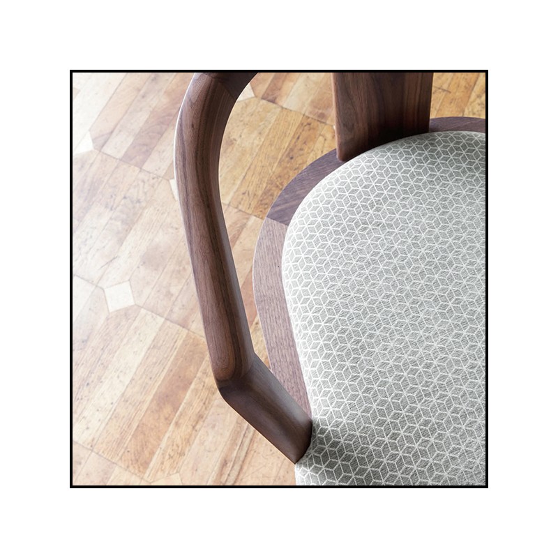 Chaise Alba est dotée d'une structure en bois de noyer massif, siège rembourré et revêtement en tissu Cat B.