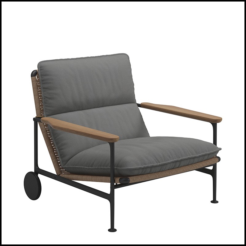 Chaise Zenith avec bras en teak est dotée d'une structure en aluminium