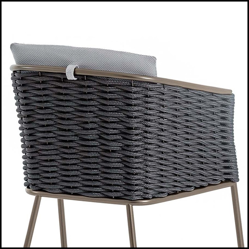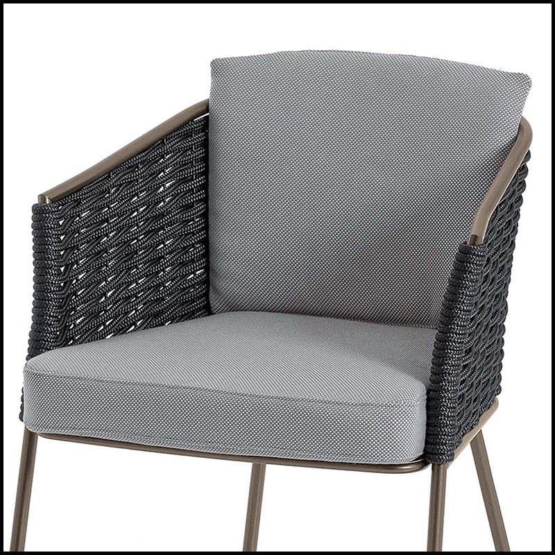 Le dossier et les accoudoirs sont en corde grise tressée.