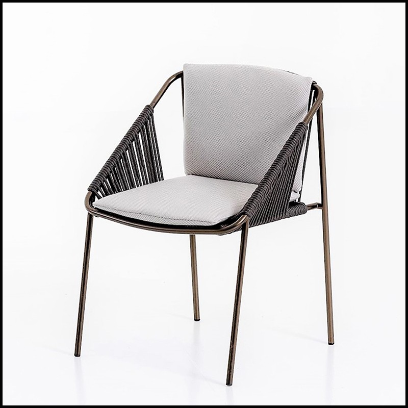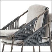 Le dossier et les accoudoirs sont en corde grise tressée.